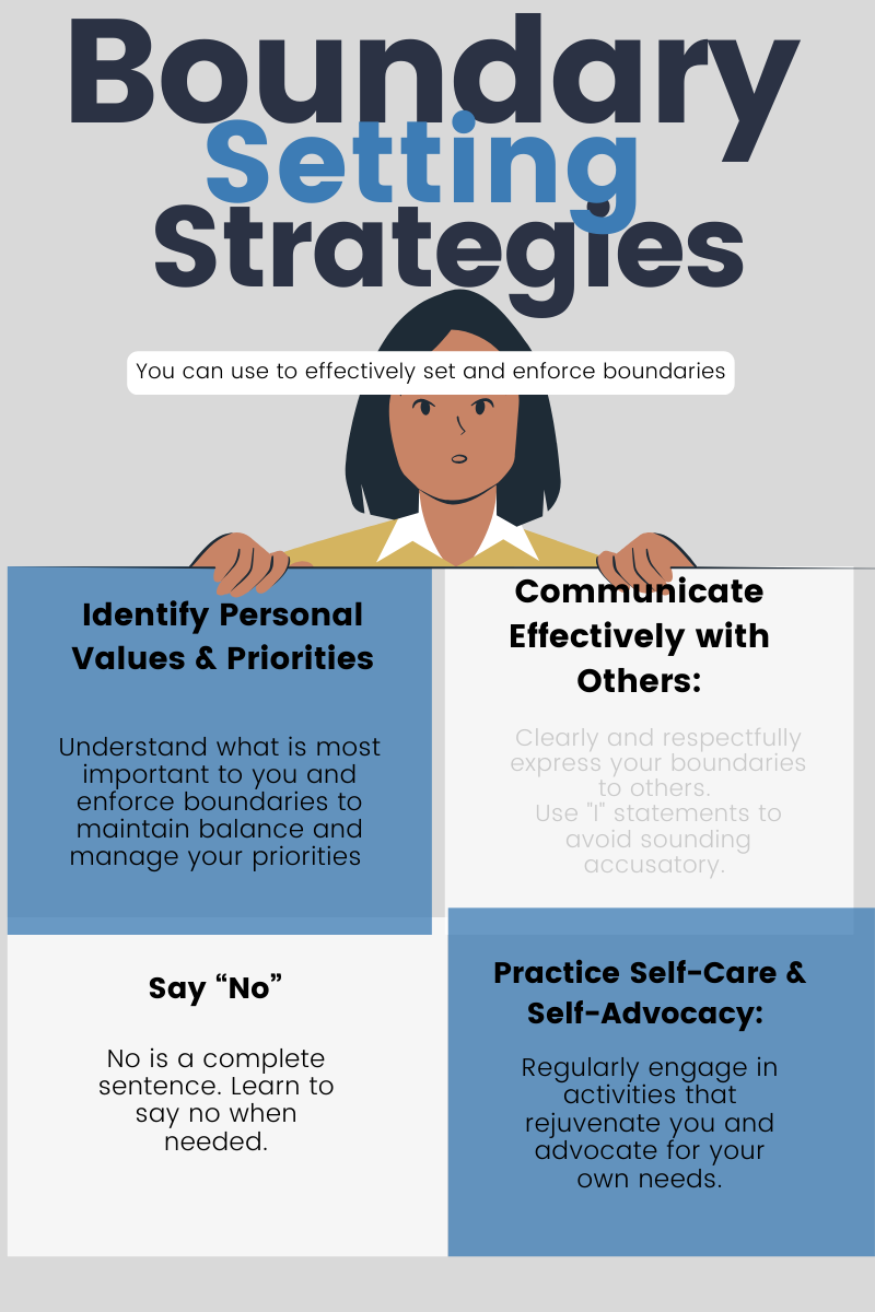 Here are a few strategies you can use to effectively set and enforce boundaries: